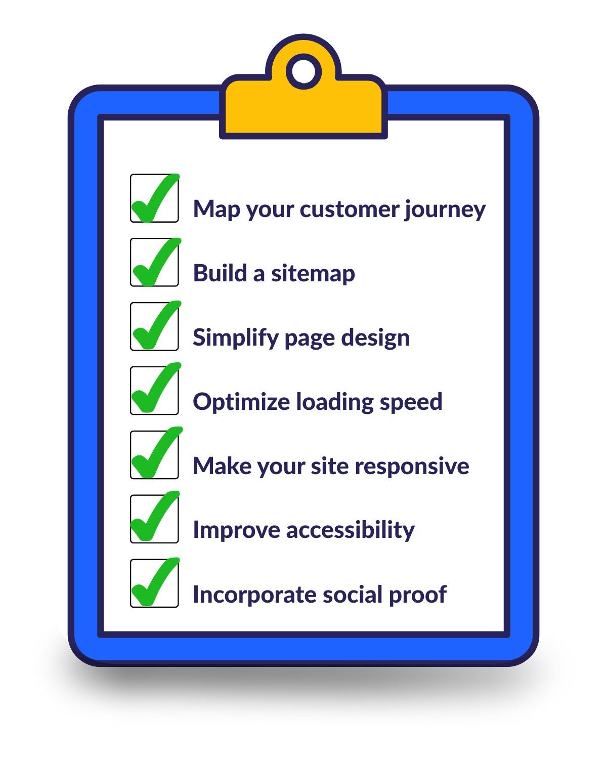 Follow the user experience website checklist outlined in this article as a starting point, considering site speed, design responsiveness, accessibility, and social proof.
