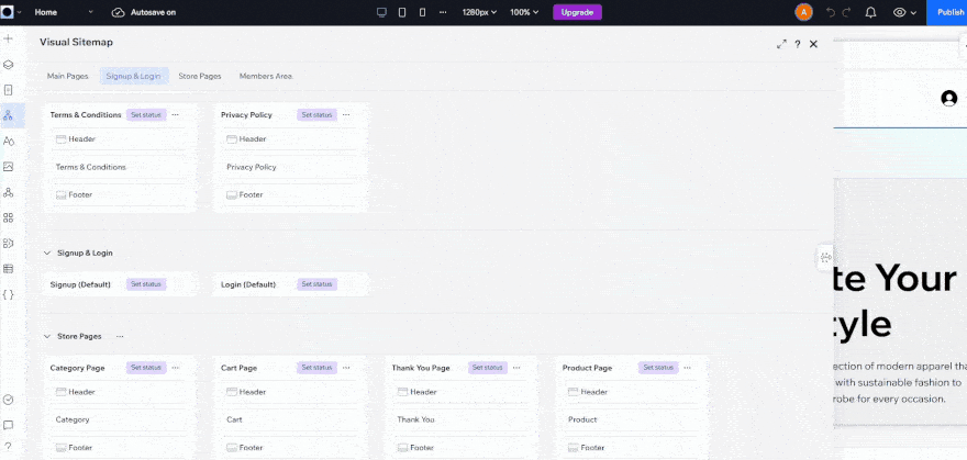 Wix Studio’s beginner-friendly AI Sitemap and Wireframe Generator generates a sitemap based on your answers to a simple form. It can also create wireframes (skeletal outlines of each page) that automatically sync together as you make changes.