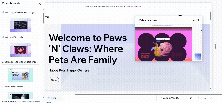 Upon entering Webflow’s editor, it provides a quick tour of the areas. However, Wix Studio’s editor immediately greeted me with a tutorial pop-up, where I could follow along to demos on everything from creating certain effects to working with different layouts.